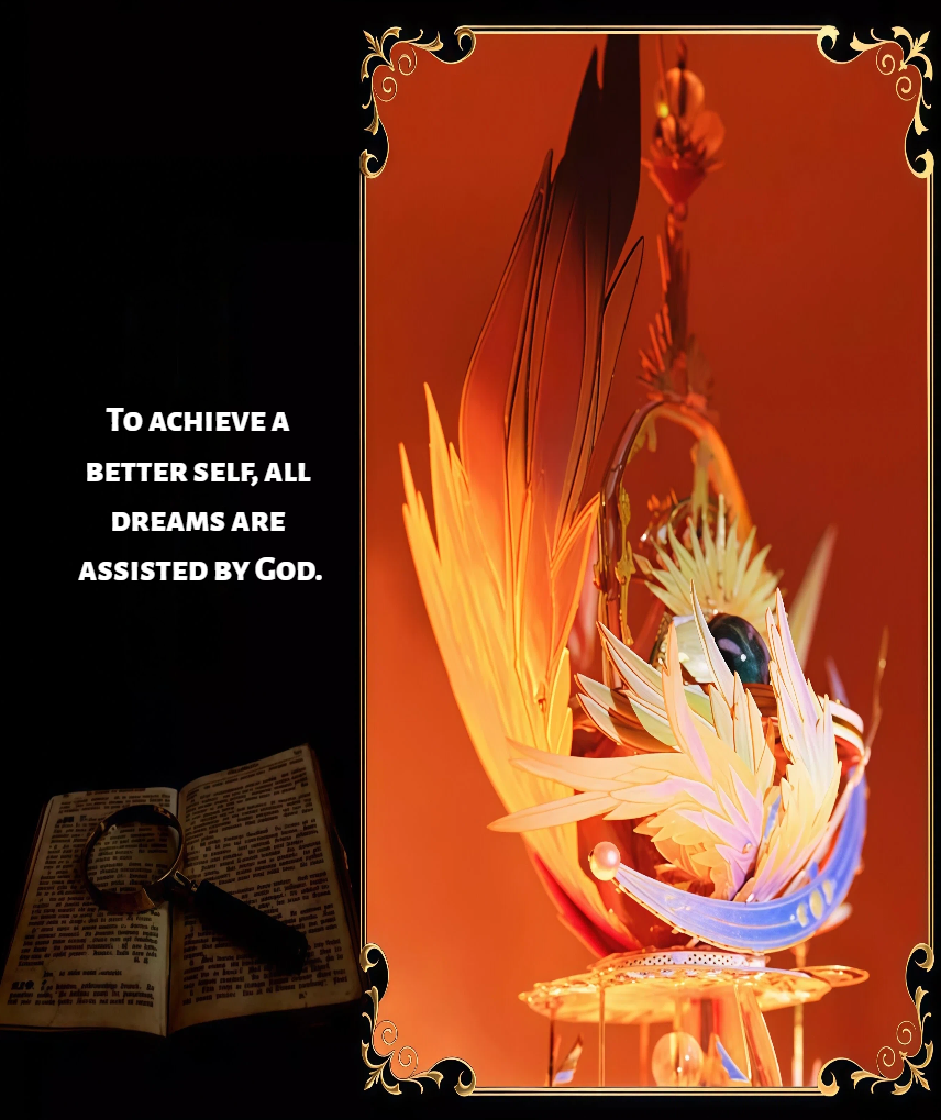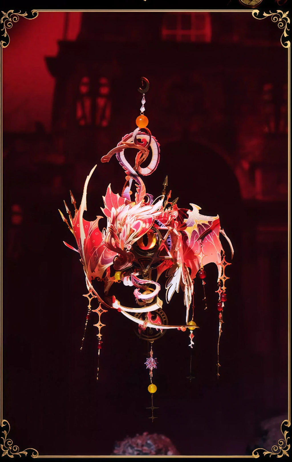 The stand features elaborate, glowing patterns (like sunbursts and celestial motifs) to frame the central ornament, creating a cohesive, atmospheric display. It’s designed to enhance the visual appeal of the ornament—blending decorative craftsmanship with a themed presentation, turning the single piece into a complete, stylized showcase.