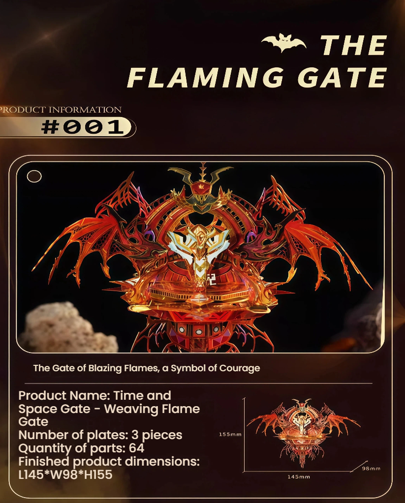 - It symbolizes courage. With the design of intense flame elements, it conveys the meaning of "burning evil and tempering one's original intention". It can be both a fun assembly item (including 3 plates and 64 parts), and the finished product can also serve as a visually striking decoration;