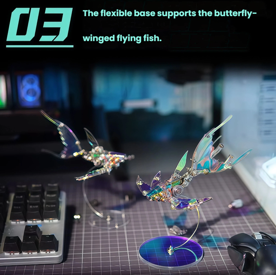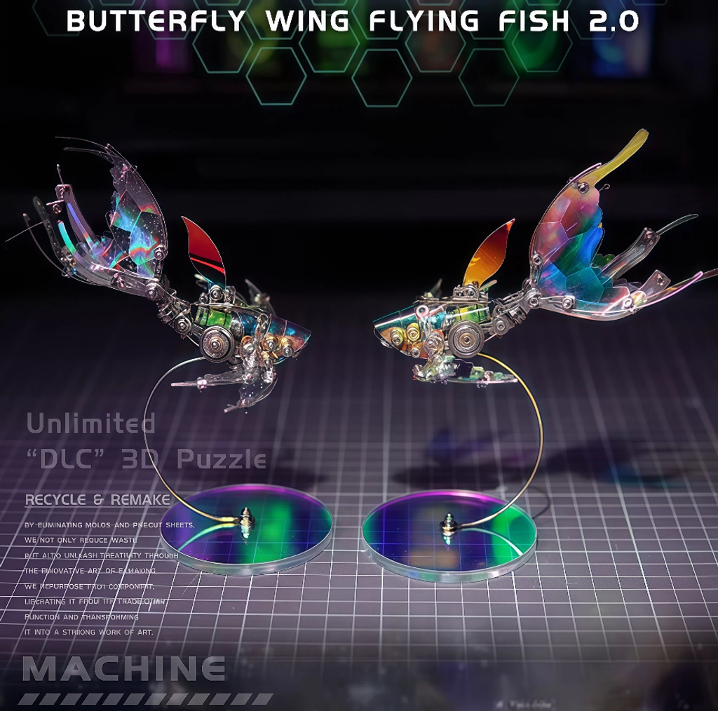 This is the "Butterfly Wing Flying Fish 2.0" 3D puzzle model, a creative toy that blends natural imagery with mechanical aesthetics: