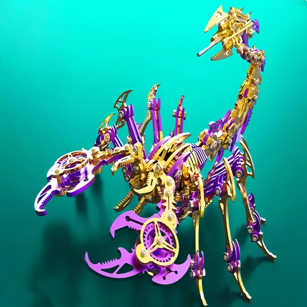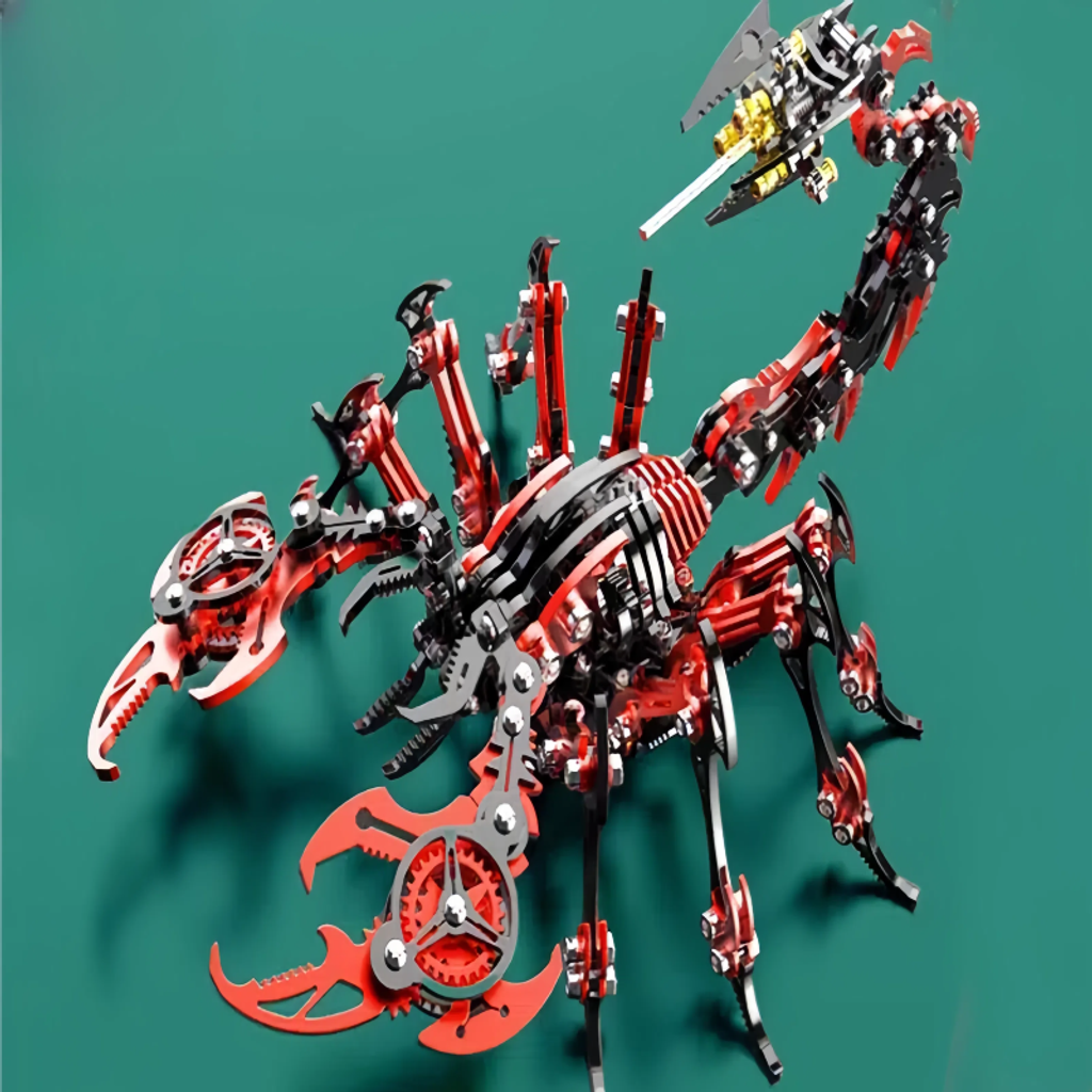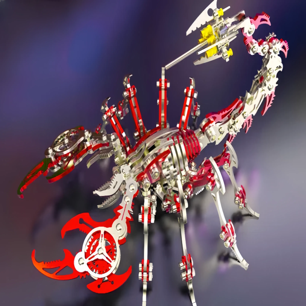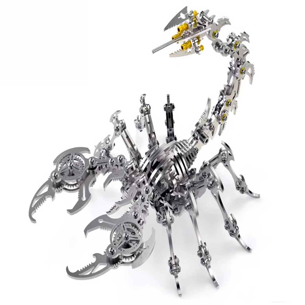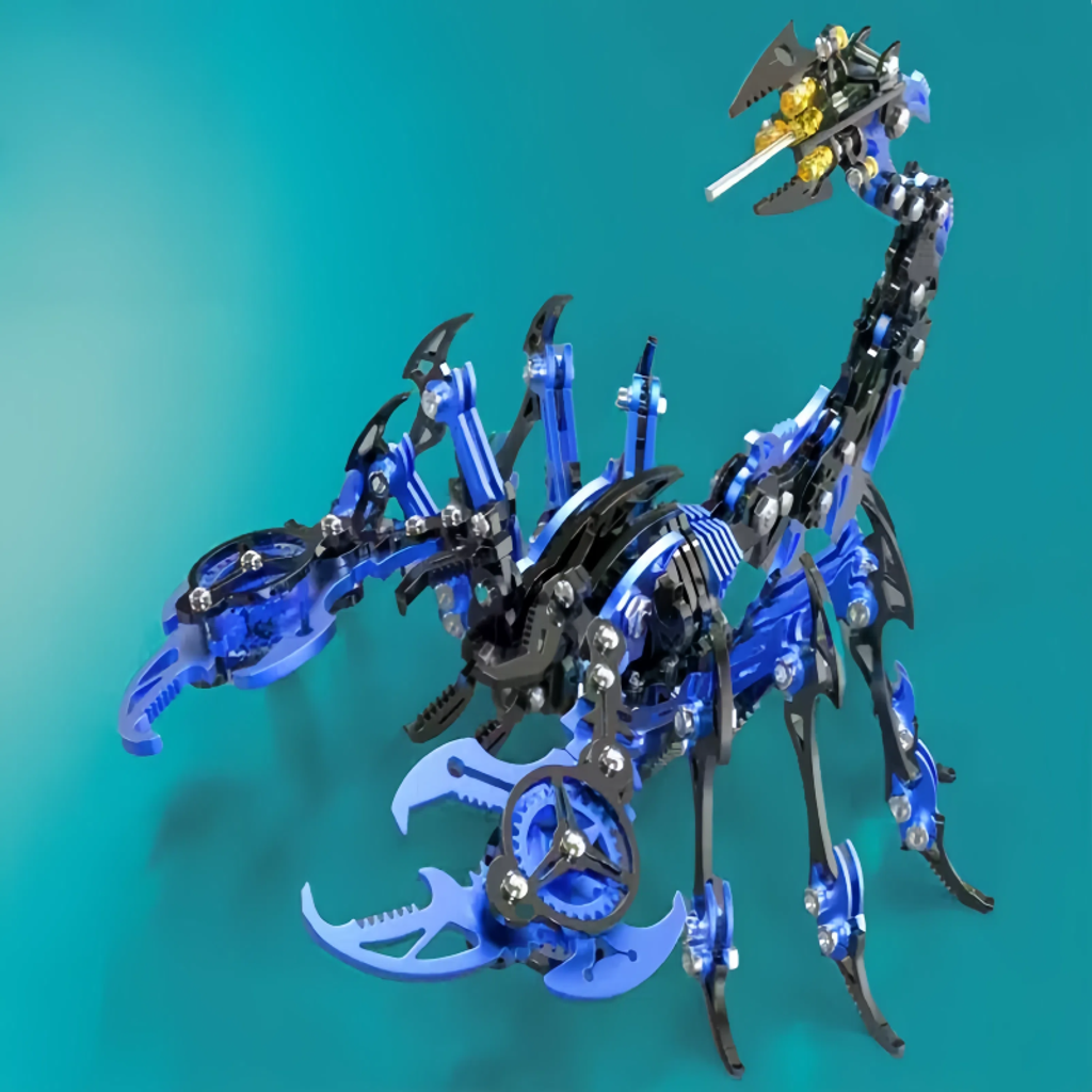 The main body is made of metal, giving it a sturdy texture and a strong sense of technology. The details of the model fully demonstrate the superb mechanical craftsmanship. Components such as gears and connecting rods are ingeniously combined. Whether it's the biting structure of the pincers or the flexible bending design of the tail, they accurately replicate the shape and movement characteristics of a scorpion.