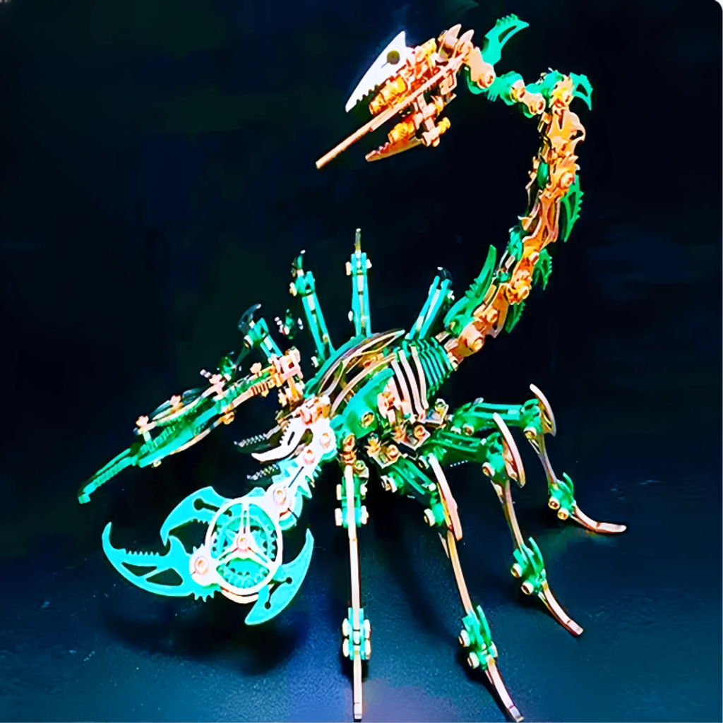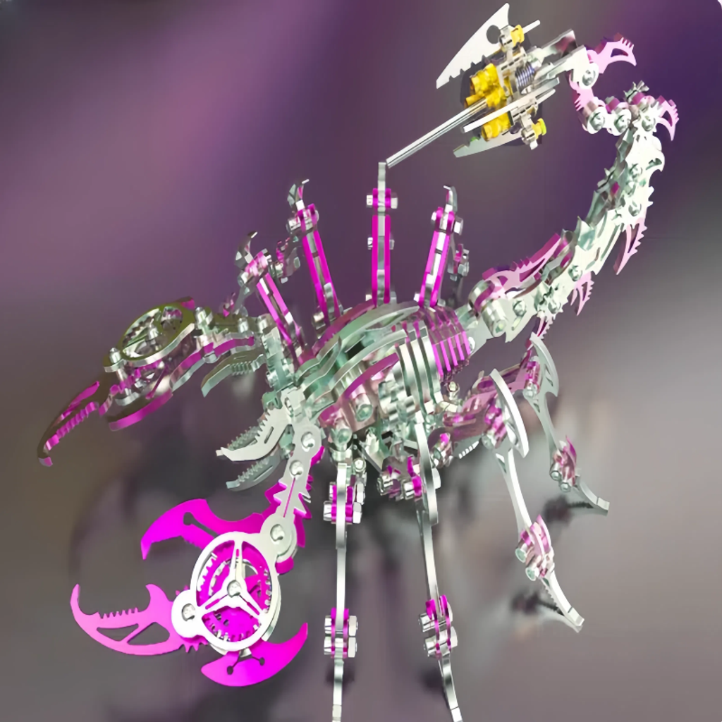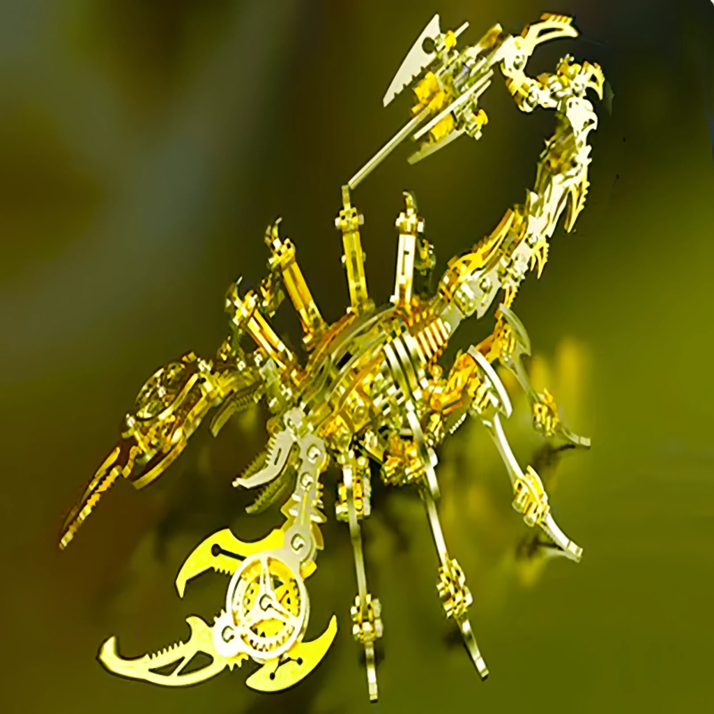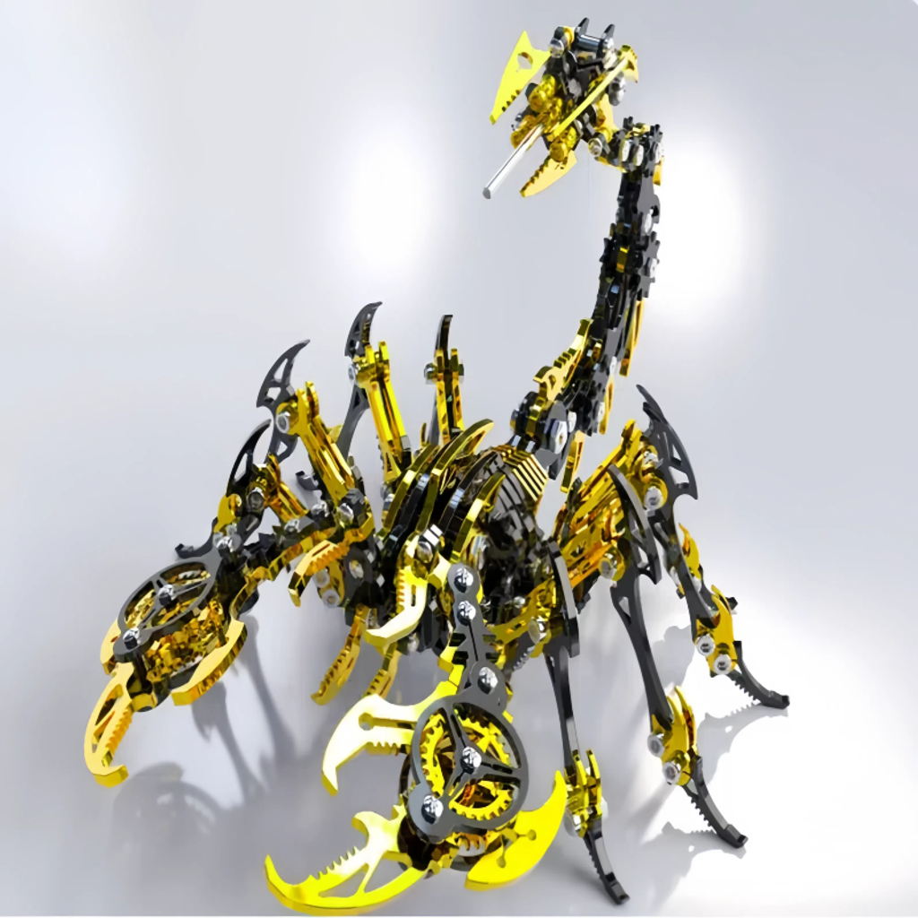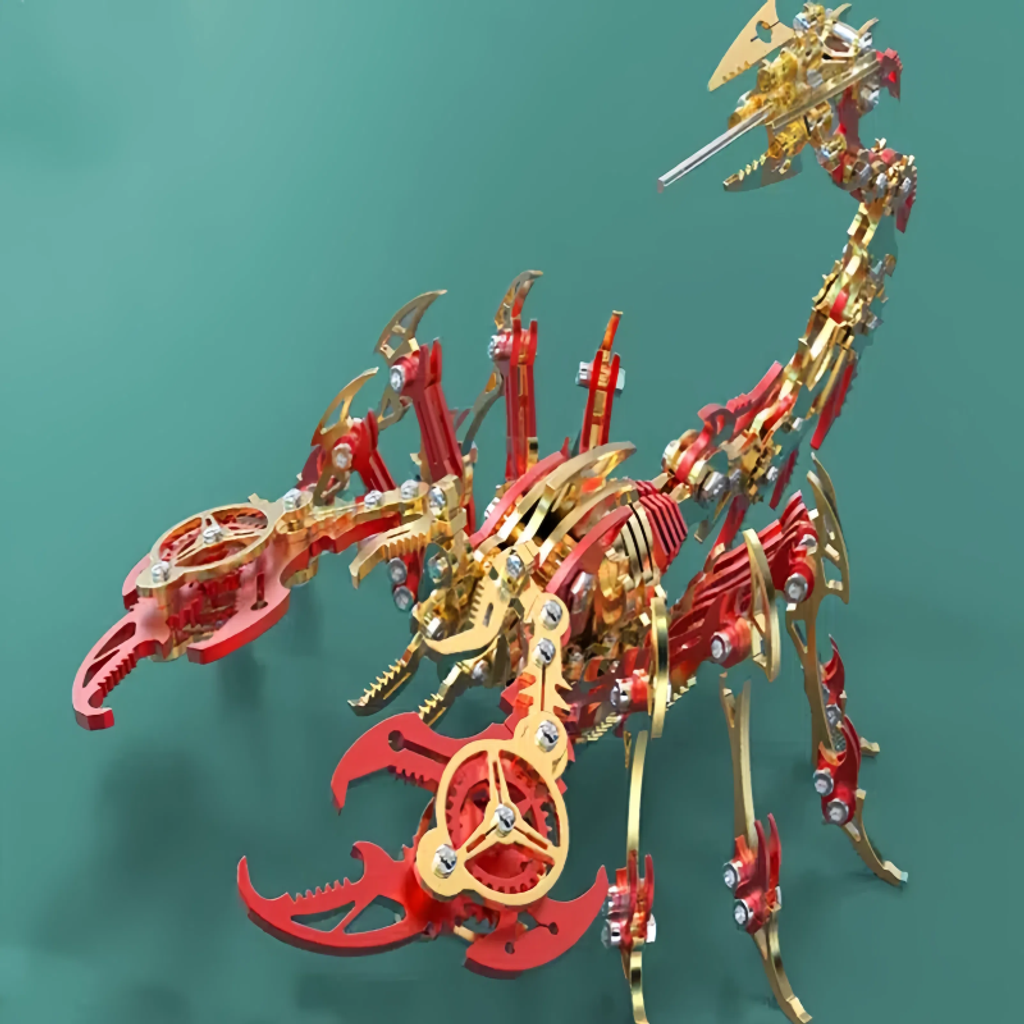 The main body is made of metal, giving it a sturdy texture and a strong sense of technology. The details of the model fully demonstrate the superb mechanical craftsmanship. Components such as gears and connecting rods are ingeniously combined. Whether it's the biting structure of the pincers or the flexible bending design of the tail, they accurately replicate the shape and movement characteristics of a scorpion.