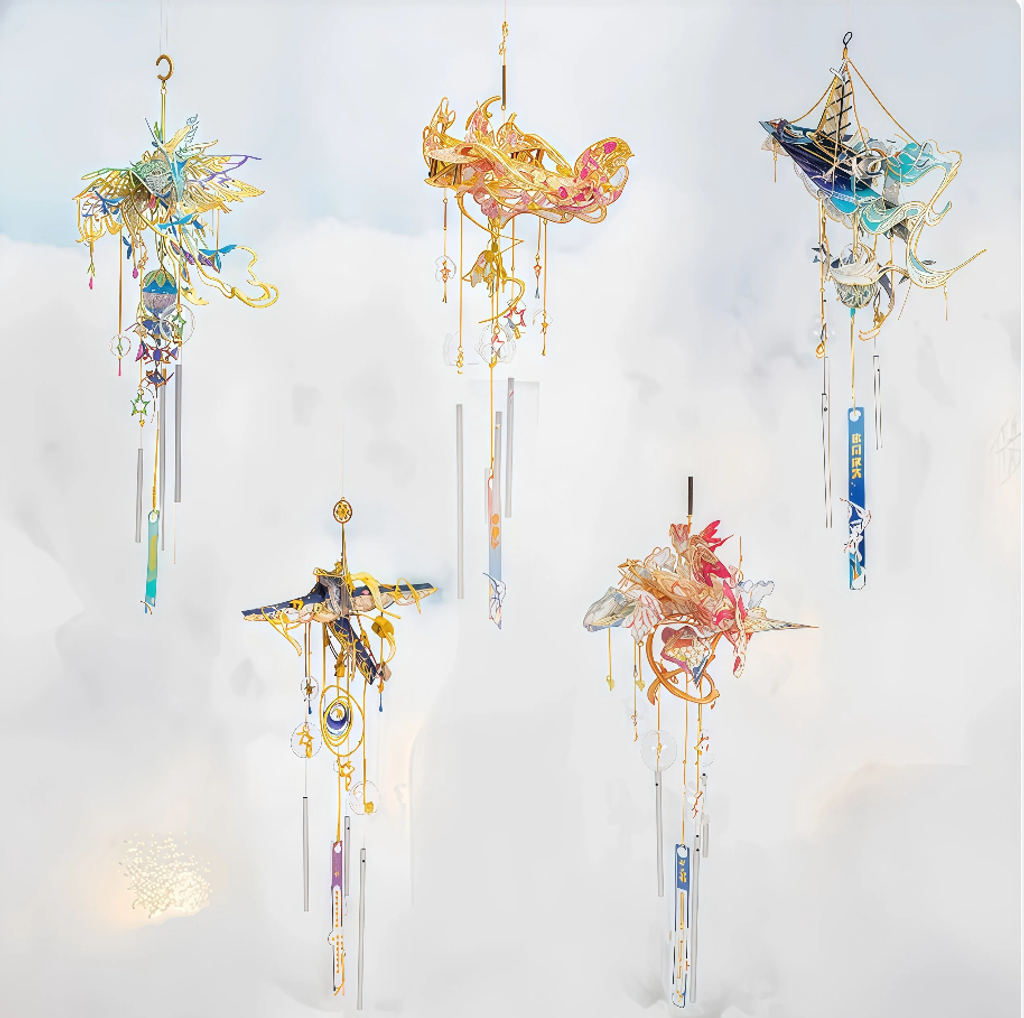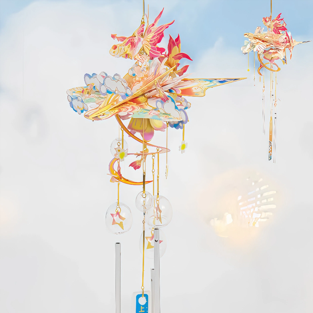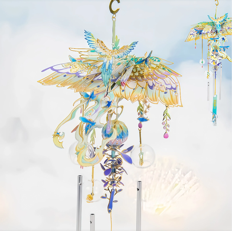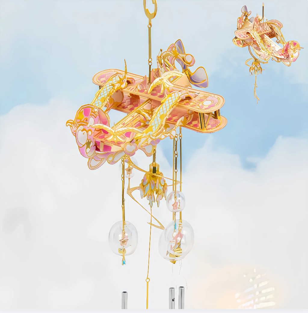 This is a themed wind chime ornament, designed with fantasy elements (such as ship, bird-like shapes) and delicate color & decorative details. It combines decorativeness and ambiance, and can bring a vivid auditory experience when gently swayed.