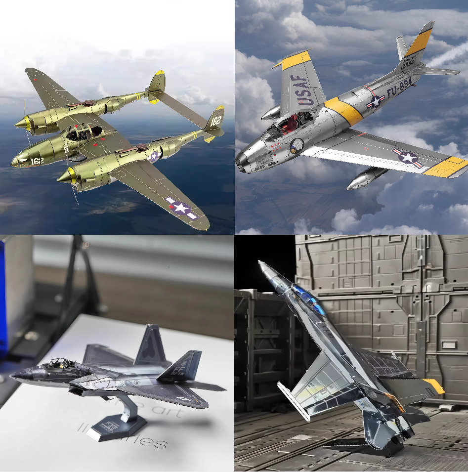Vintage & Modern Military Fighter Metal Assembly Model Collection