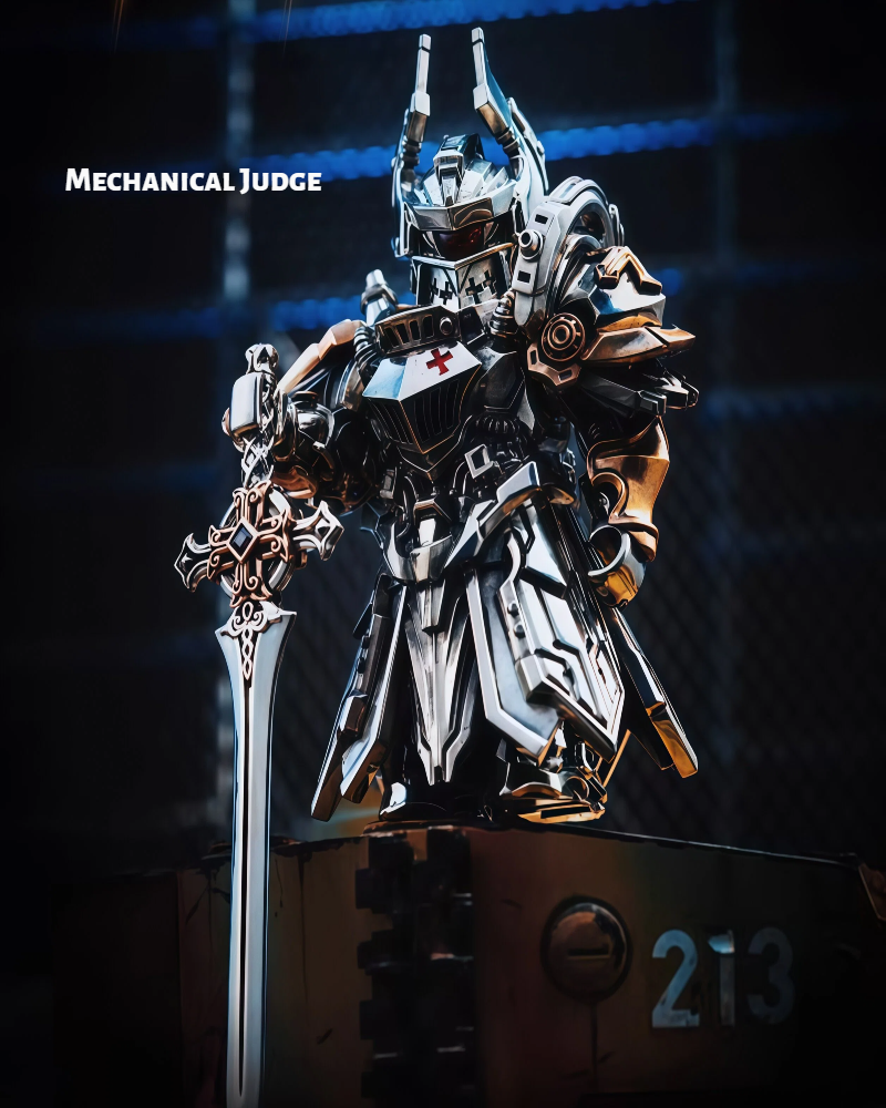 This "Mechanical Judge" metal magnetic DIY model is a fusion of futuristic mechanical aesthetics and chivalric spirit.