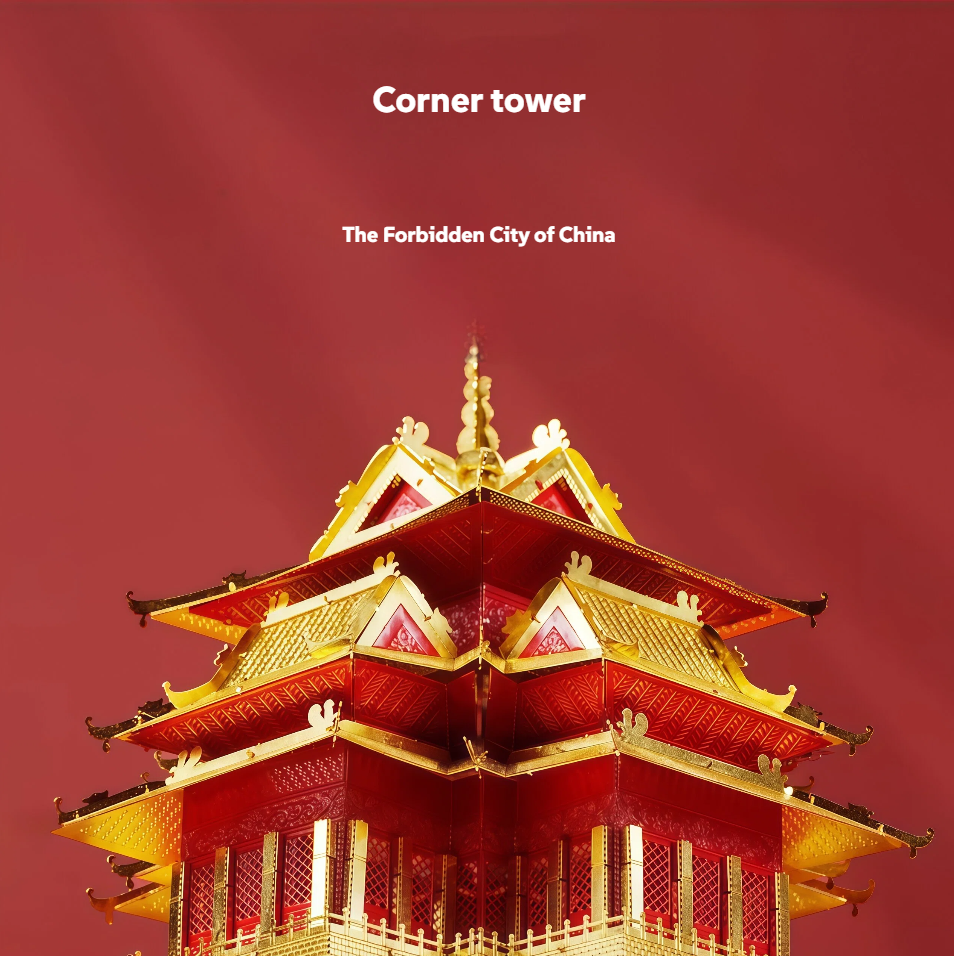 This model replicates the Forbidden City’s corner tower—an iconic structure of the Ming and Qing imperial palace, first built in the Ming Dynasty; renowned for multi-layered eaves, exquisite mortise-and-tenon structure and ornate details, it is a pinnacle of ancient Chinese wooden architecture, once serving defensive/observation roles, its symmetrical red-wall-golden-tile form aligns with imperial architectural rituals and embodies Chinese architectural aesthetics, now a classic symbol of Chinese traditional culture and architectural art.