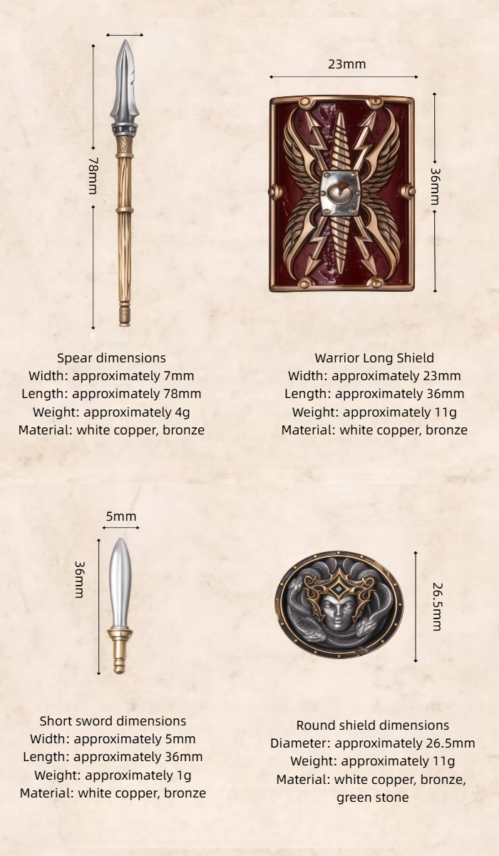 Spartan commander + short sword + spear + Medusa round shield + warrior long shield